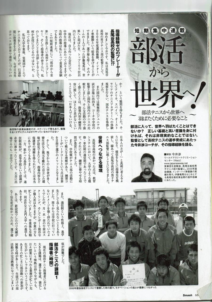 練習していればいつかはうまくなります。ですが、接する時間は限られた3年間。どうやってうまくなり強くするのか?ジュニアたちは勝手にはうまくなりません。そして強くなりません。日本人が持つこだわりや繊細さを存分に活用した練習メニューが必要です!(テニス雑誌連載)