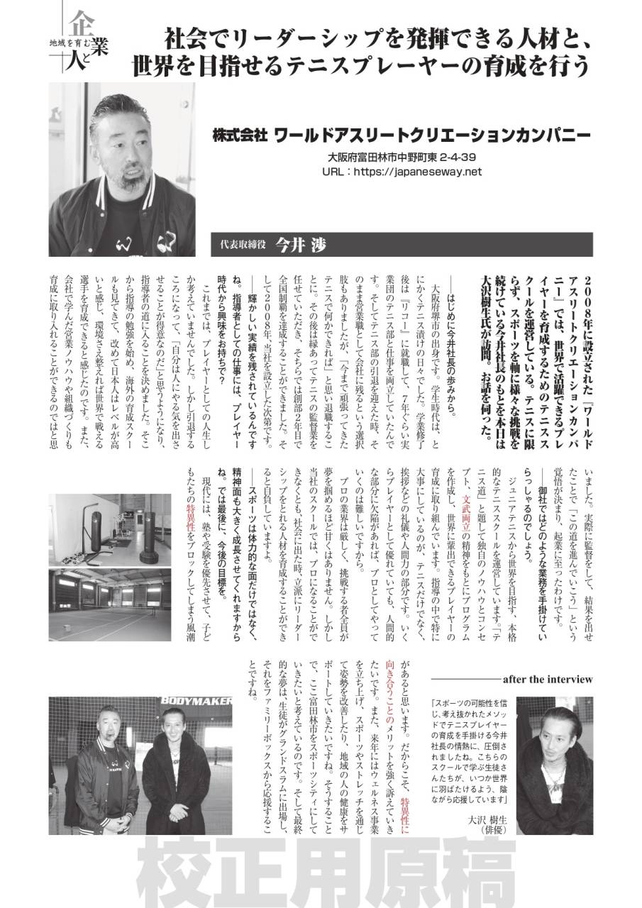 株式会社ワールドアスリートクリエーションカンパニー 代表取締役 今井渉 の魅力!